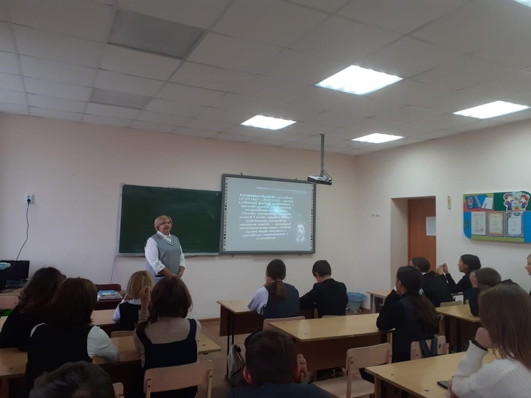 В нашей школе в 7Б классе советник по воспитанию провел час науки «Циолковский: космические пророчества».