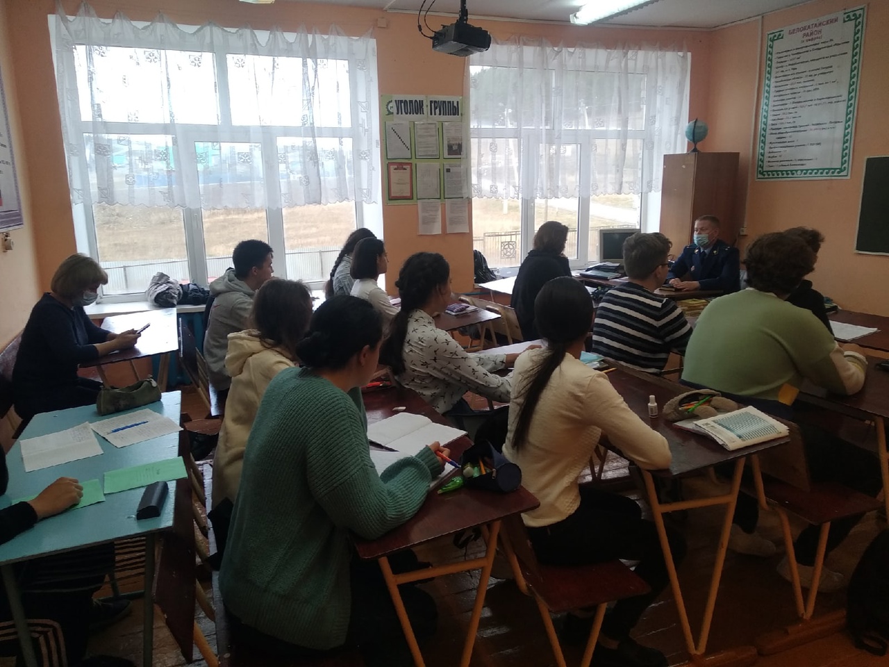 10 сентября прокурор Белокатайского района Елизаров Дмитрий Сергеевич провёл в 11 классе профориентационную беседу и беседу по профилактике правонарушений. Классный руководитель провела беседу о вреде алкоголя.