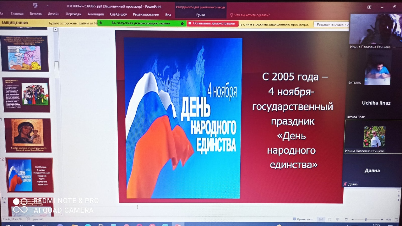 Онлайн классные часы, посвященные Дню народного единства