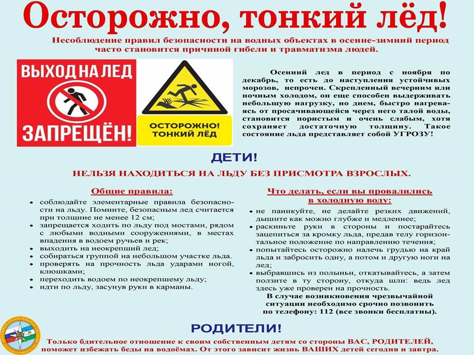 Несоблюдение правил безопасности на водных объектах в осенне-зимний период часто становится причиной гибели и травматизма людей!